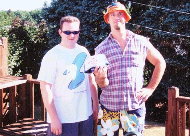 My uncle Dan (holding a crappy east coast punk hat) with local weather man Matt Ritter
